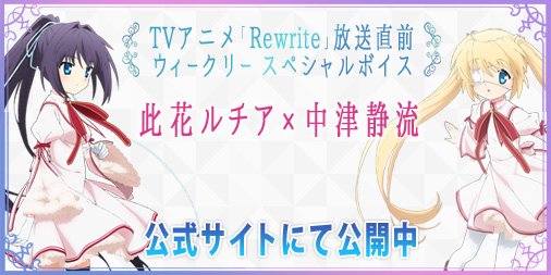 Just a reminder: in about 30 minutes Crunchyroll is going live (https://www.twitch.tv/crunchyroll) to announce a wave of summer shows. Aniplex shows are usually among the first to get simulcast announcements so I wouldn’t be surprised if we got info on when we can watch Rewrite here.